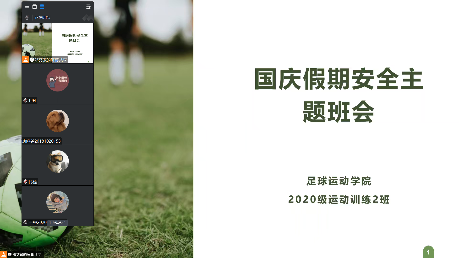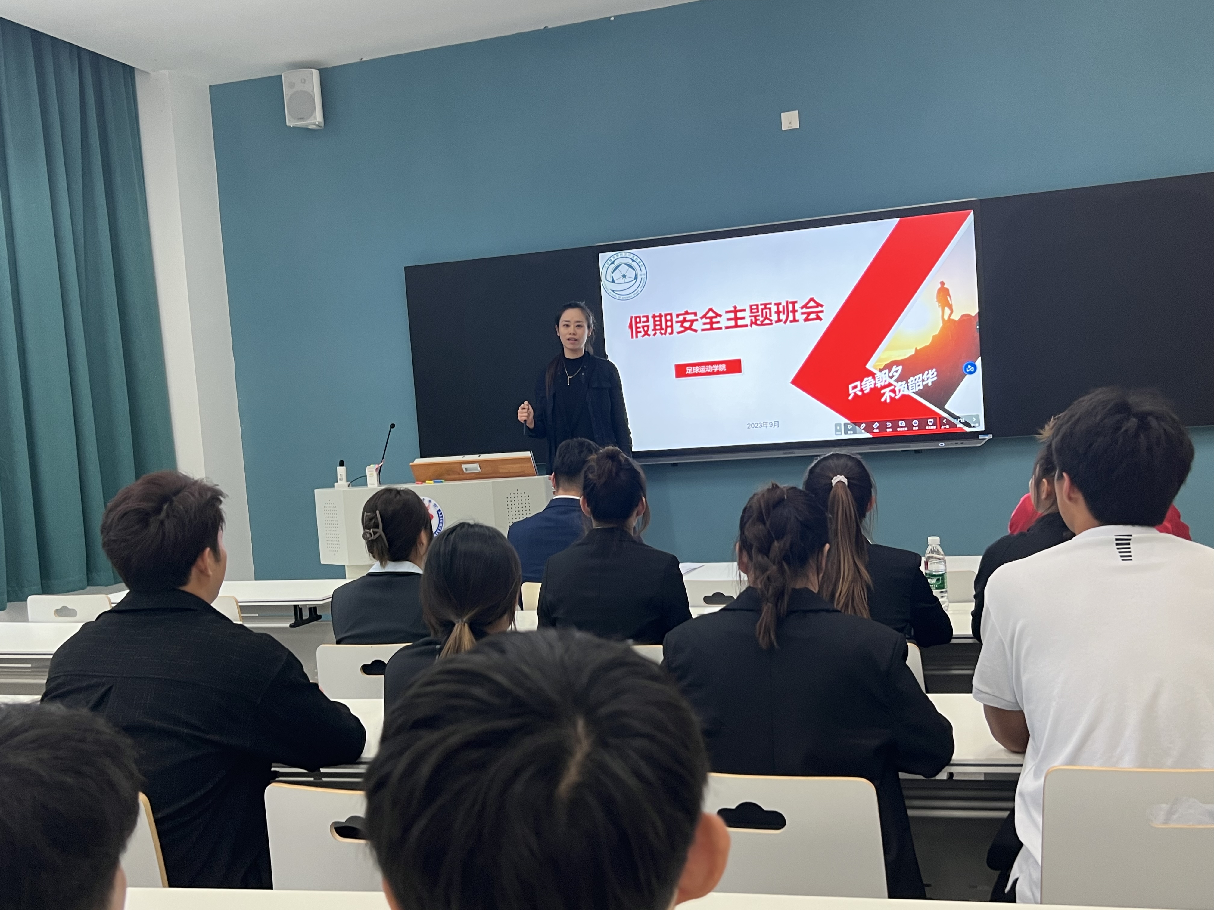 2023年9月25日——27日足球公司在新校区举行安全教育主题班会。学管办、各班主任主持班会,21、22、23级全体员工参加,20级实习生通过线上参会。