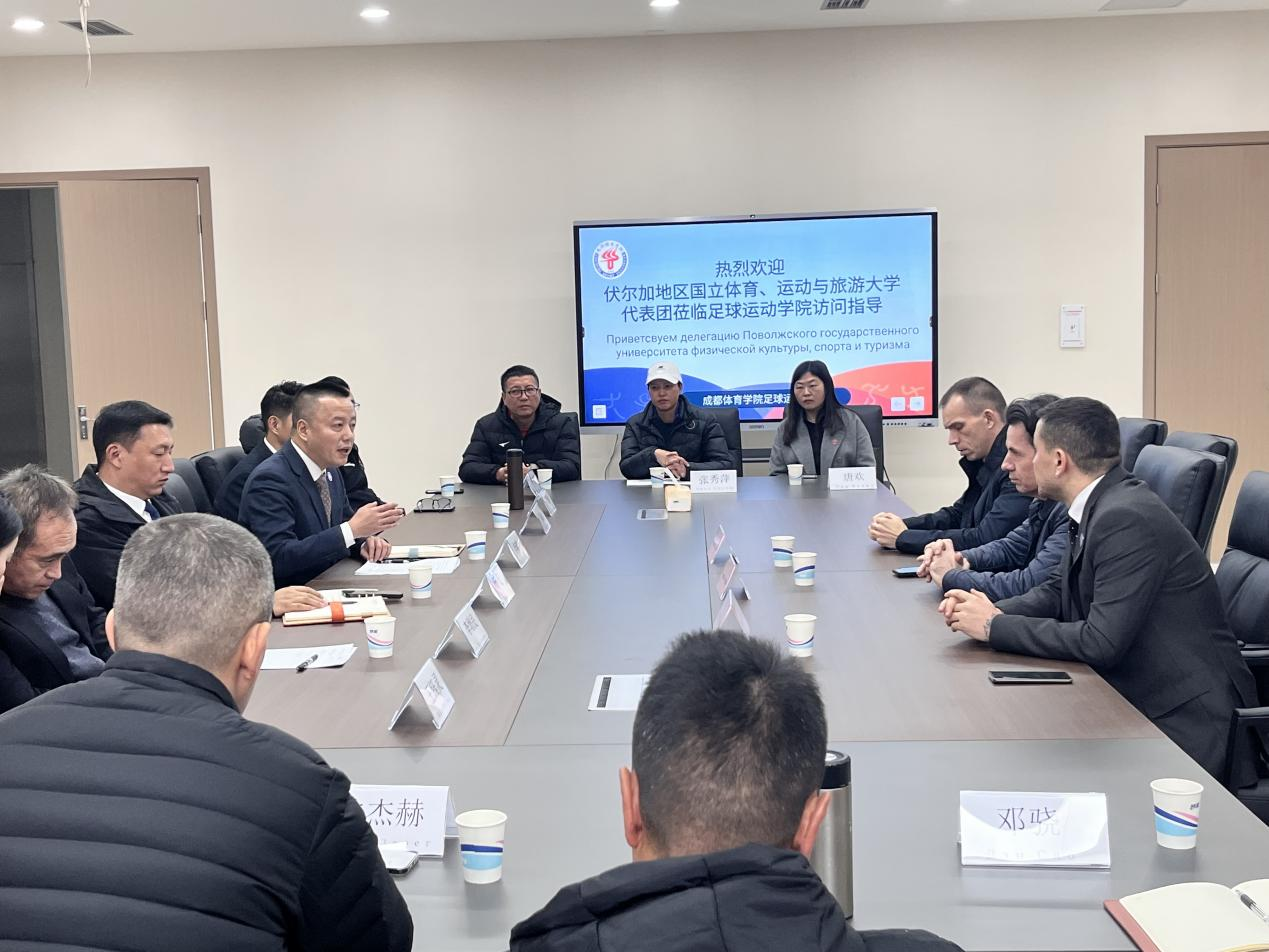 2023年12月13日下午,俄罗斯伏尔加地区国立体育、运动与旅游大学交流团第一副董事长沙拉波夫·阿扎特先生,副董事长纳扎伦科·安德烈先生,以及萨诺夫·纳吉乌拉先生一行莅临永利yl23411集团进行访问交流。