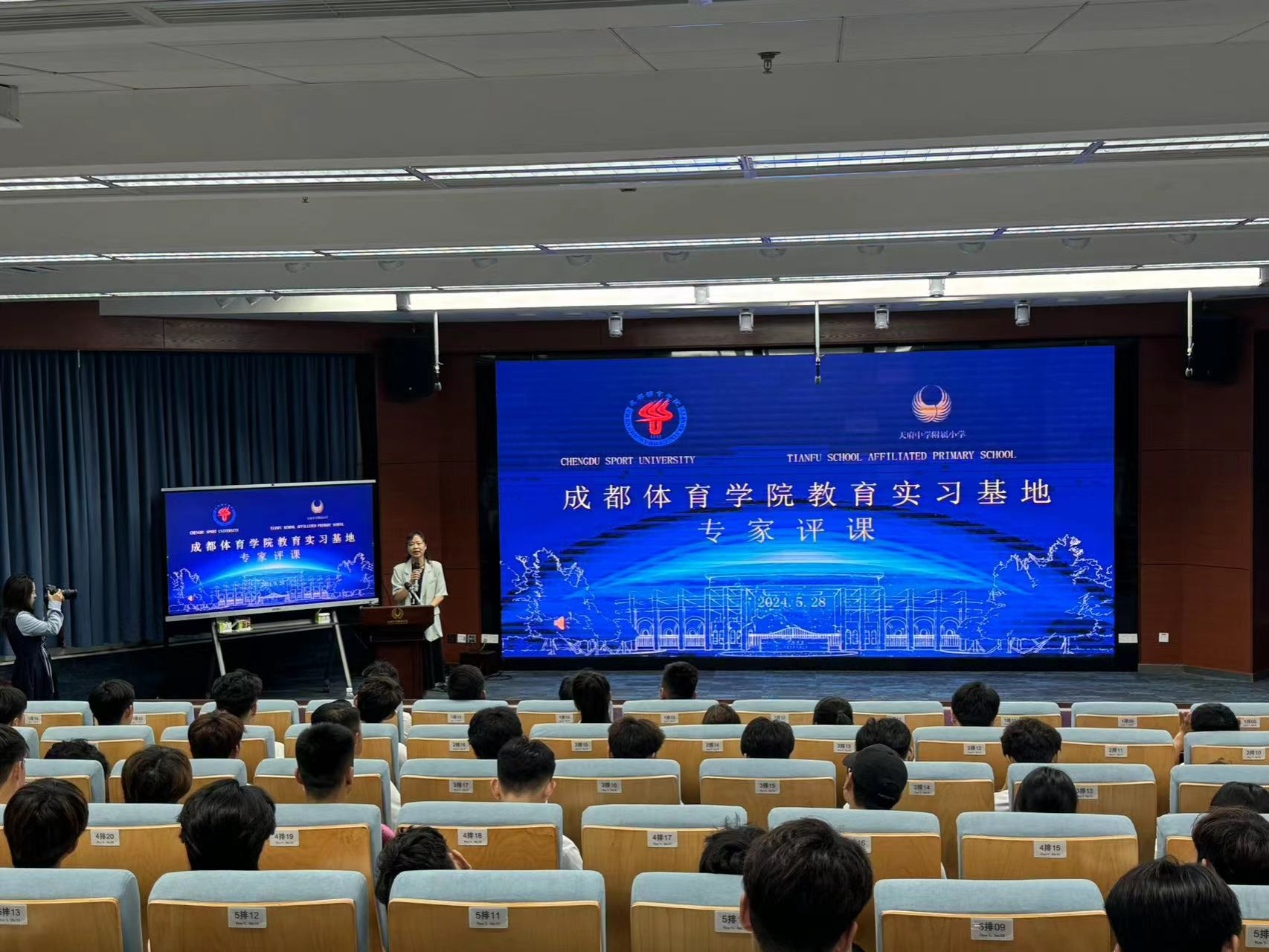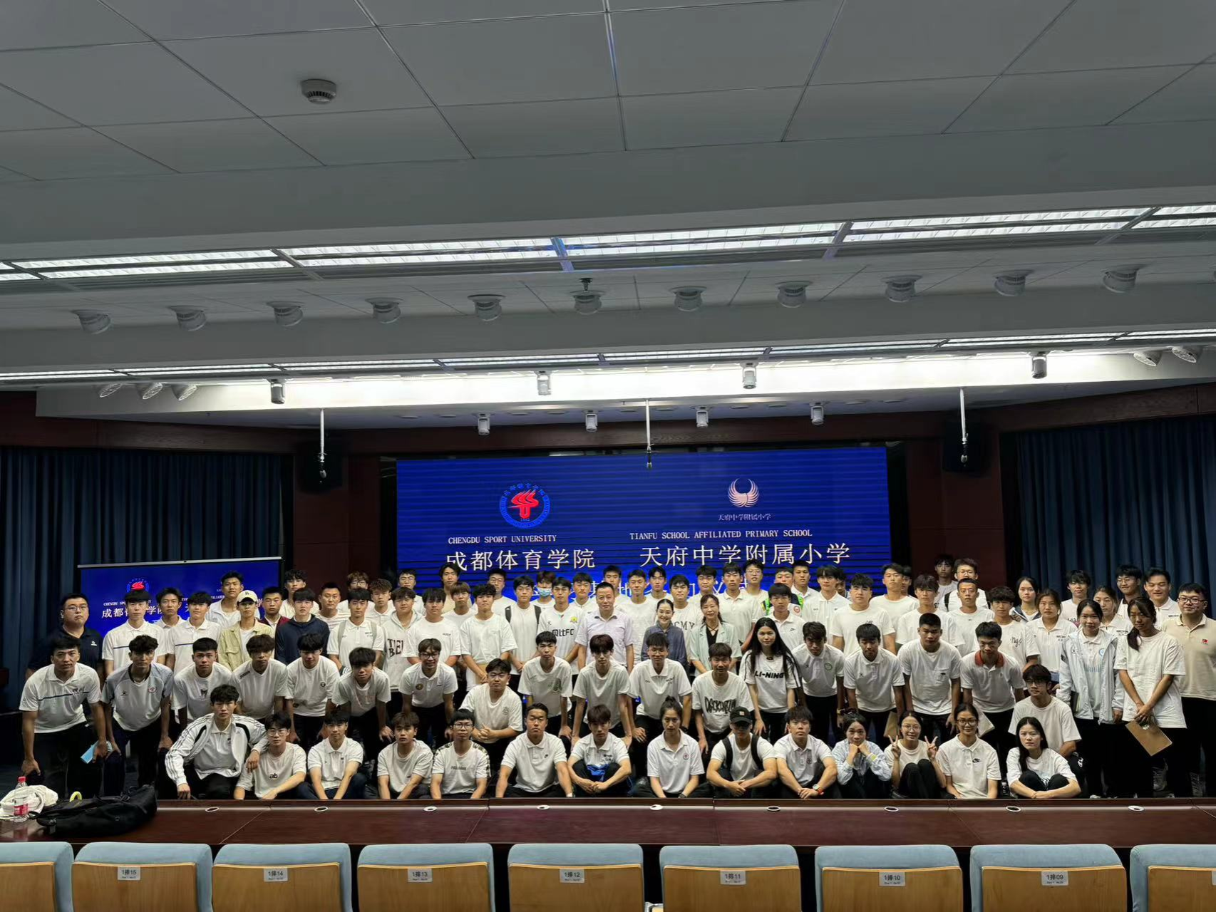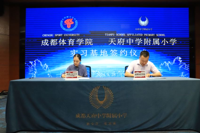 在天府中学附属小学的多功能厅内,李畔经理代表公司与陆枋董事长正式签订了实习基地协议。该协议为员工们提供了更多宝贵的实践机会,使他们能够在优质的教育基地中锻炼和提升公司产品以及运动训练等技能。