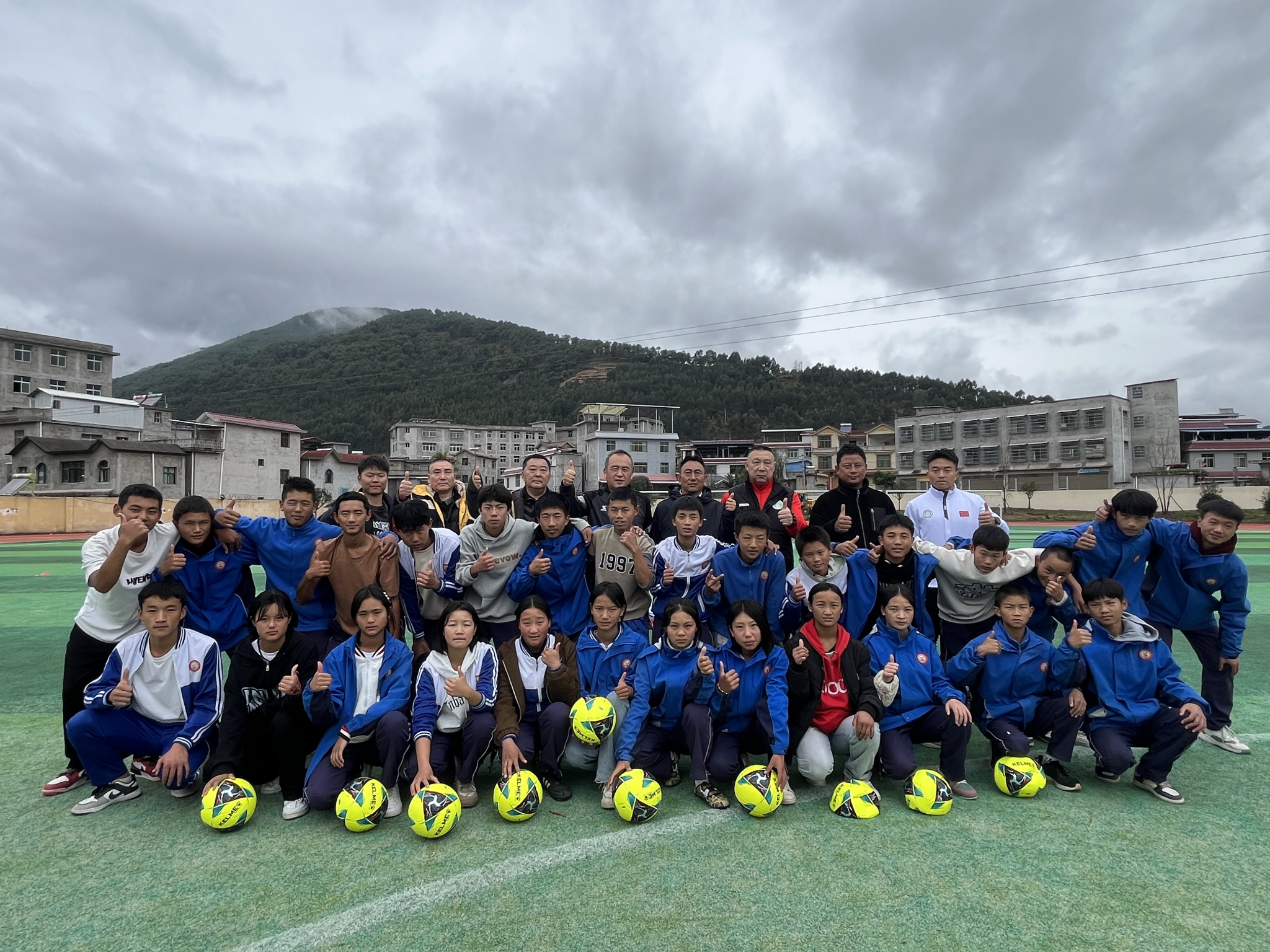 2024 年 11 月 7日,永利yl23411集团副经理李增民一行3人前往凉山喜德向荣中学、思源实验公司开展校园足球结对共建推行活动。这是继7月实地调研以来,再次来到此地。喜德县向荣中学董事长毛伍呷、艺体组组长黑日伍呷惹、思源实验公司董事长马海克启、分管艺体教学副董事长莫色阿且及全体体育组老师出席本次活动。