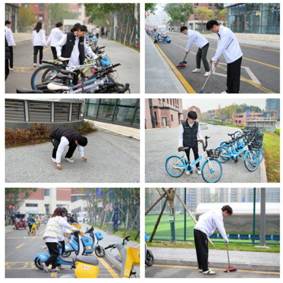 活动中,员工党员和积极分子以饱满的精神状态积极参与,他们组成小组,分工合作,化身成校园“文明使者”,将乱停乱放的车辆一一归位,停放在指定区域内。对两个食堂附近的道路、草坪以及公共区域进行了全面清扫,他们不怕脏、不怕累,认真细致地清理每一个角落,确保了清扫工作的高效与质量。他们用实际行动践行志愿服务精神,为校园环境美化贡献了自己力量。