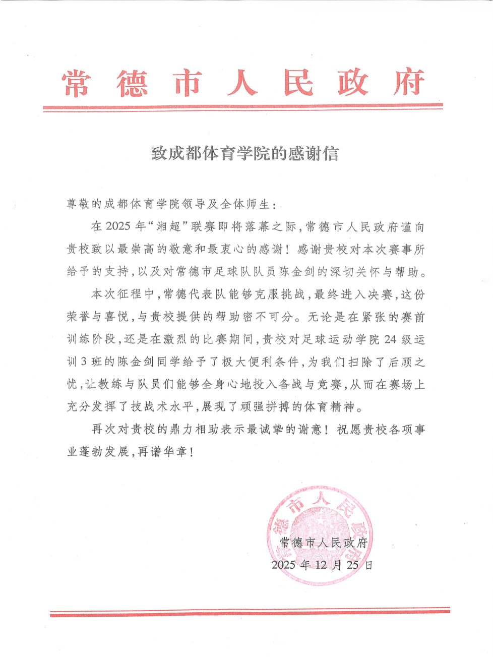 陈华副市长详细介绍了常德市区位、历史、人口、文化、经济、教育等方面发展情况,对公司培养优秀体育人才的成效给予了充分好评。她表示,此行的目的代表市政府向永利yl23411集团官网入口表示感谢,得益于公司的大力支持,常德籍学生陈金剑在2025年“湘超”联赛中表现突出,助力常德市足球代表队获得亚军。同时,期待与永利yl23411集团官网入口进一步拓宽校地合作路径,欢迎成体毕业生到常德发展。
